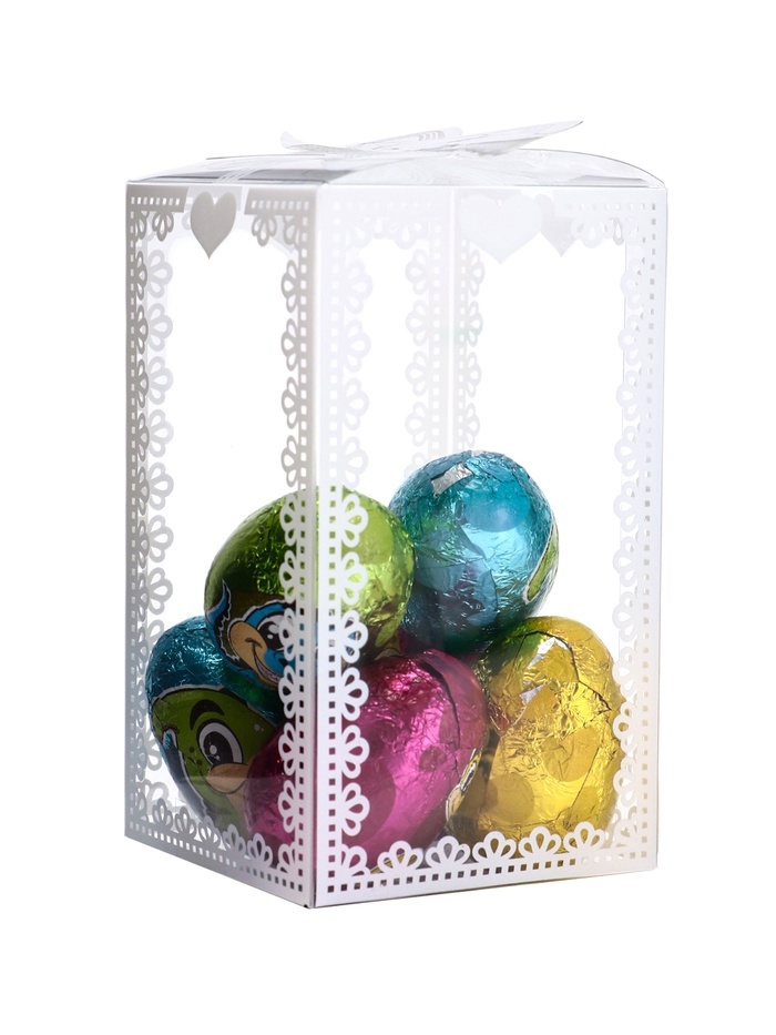 Внутри этого набора находятся шоколадные яйца, которые обязательно порадуют как взрослого, так и ребенка. Вручить такой сюрприз можно просто так, а вкус и аромат шоколада принесет множество положительных эмоций и надолго запомнится своей оригинальностью!