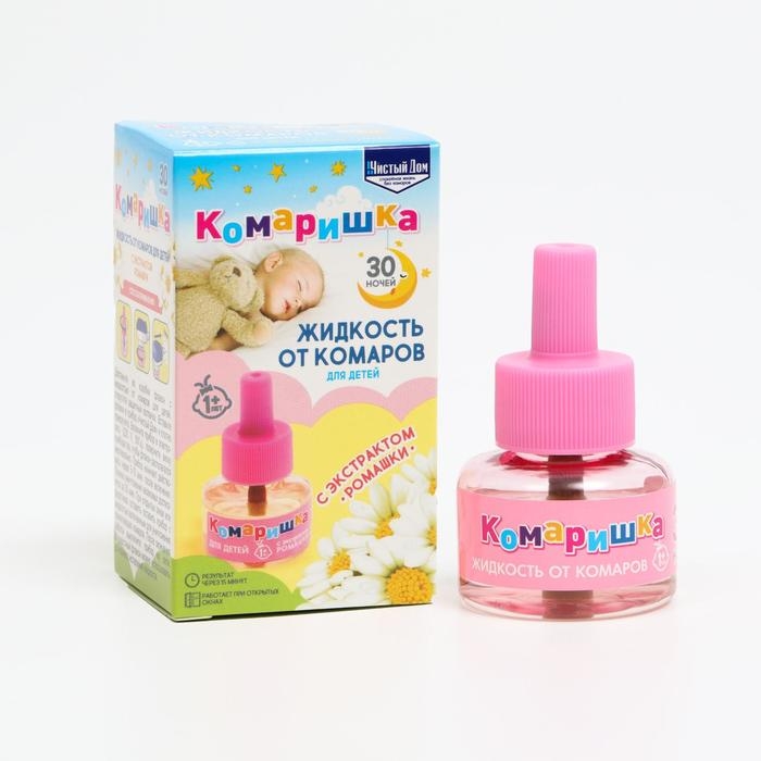 Сделайте своему ребенку приятные и спокойные ночи с помощью дополнительного флакона-жидкости от комаров ""Чистый дом"", комаришка, специально разработанного для детей. Он поможет уберечь вашего малыша от неприятных укусов комаров и обеспечит ему комфортный сон и безопасное время игры."