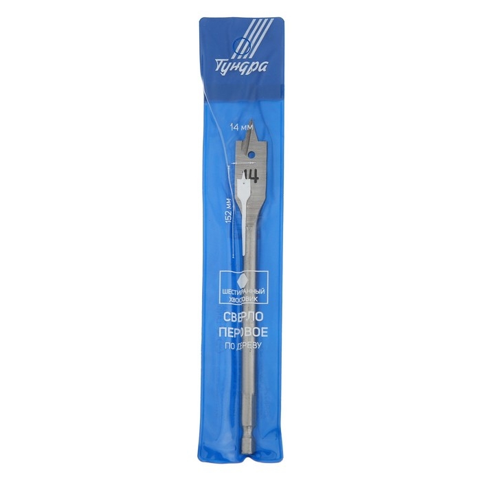 Сверло по дереву перовое ТУНДРА, шестигранный хвостовик, 14 х 152 мм