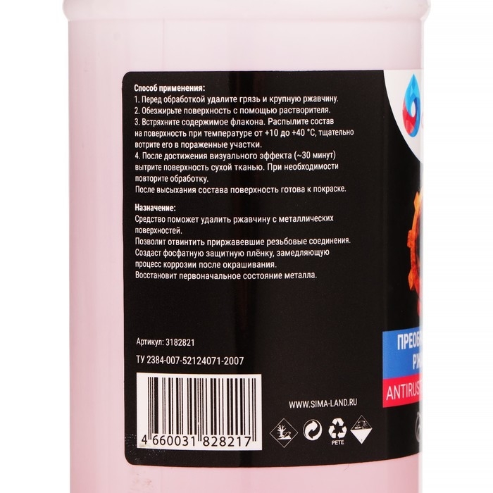 Этот преобразователь ржавчины идеально подходит для использования на металлических поверхностях, таких как автомобильные детали, инструменты, заборы и другие металлические конструкции. Он быстро проникает в поры ржавчины, действуя на ее структуру и обеспечивая мгновенное разрушение.