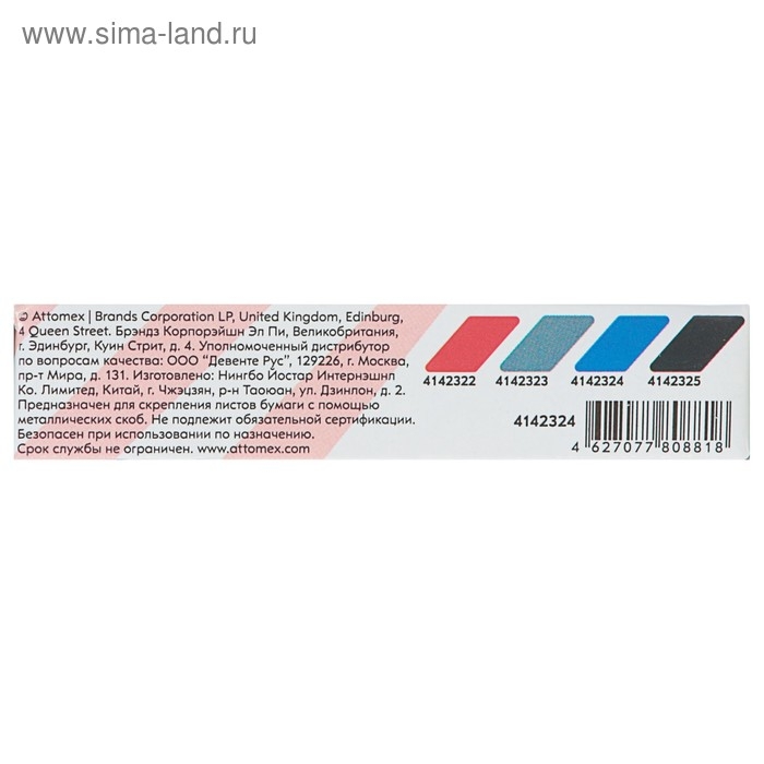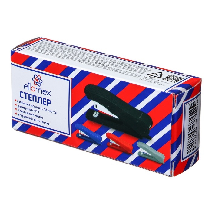 Степлер "Attomex" № 10 усиленный (мощность 18 листов, глубина скрепления 45 мм) пластиковый, в картонной коробке, со встроенным антистеплером, синий.
