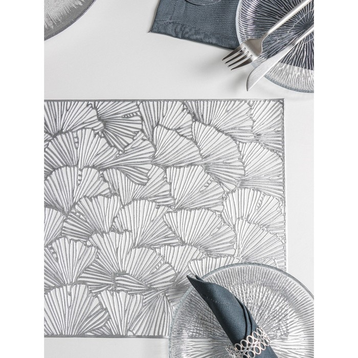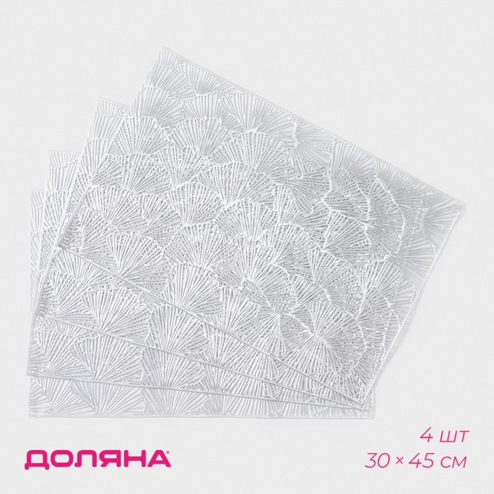 Салфетки сервировочные на стол Доляна «Веер», 4 шт, 30×45 см, цвет серебряный