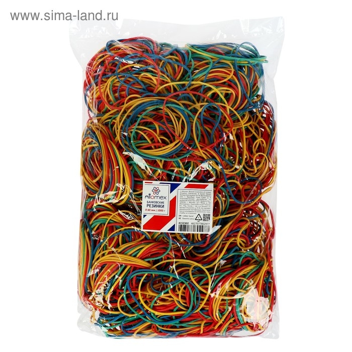Банковская резинка, 1000 г, ErichKrause, диаметр 40/60 мм, длина 60/100 мм, микс, в пакете