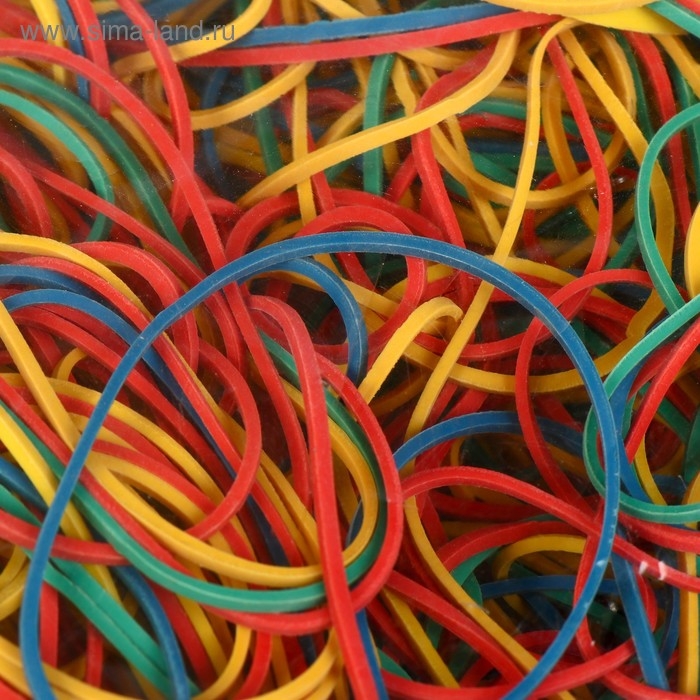 Банковская резинка, 50 г, диаметр 60 мм, длина 95 мм, сечение 1,7 х 1,7 мм, микс, в пакете