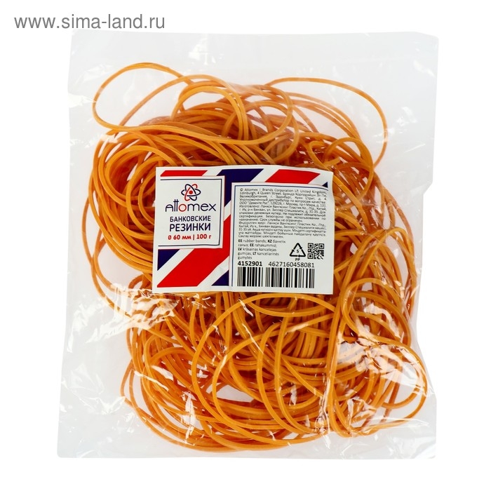 Резинки банковские "Attomex" диаметр 60 мм, 100 г, натуральный цвет.