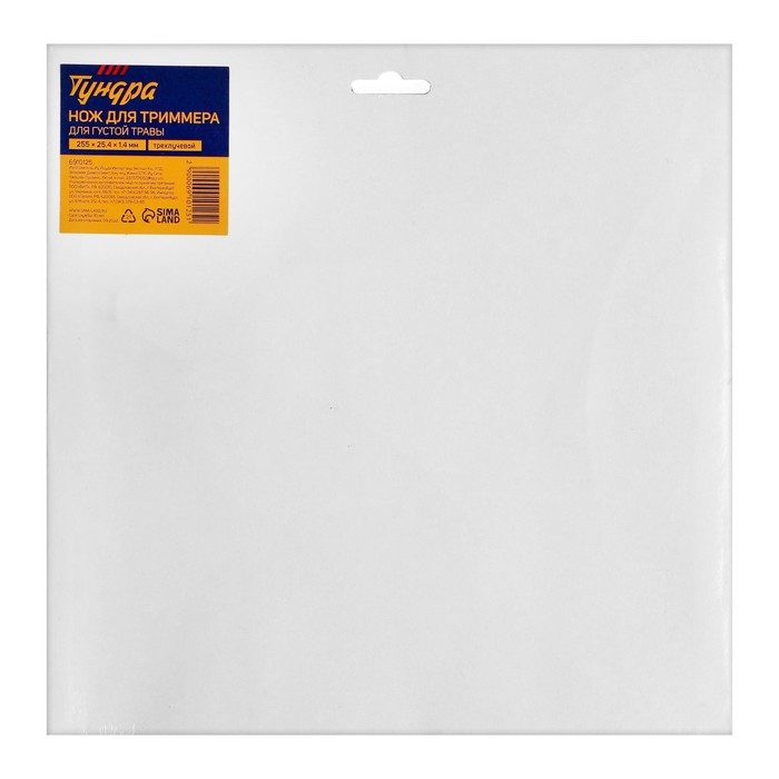 Нож для триммера ТУНДРА, трехлучевой, для густой травы, 255 х 25.4 х 1.4 мм