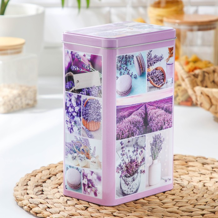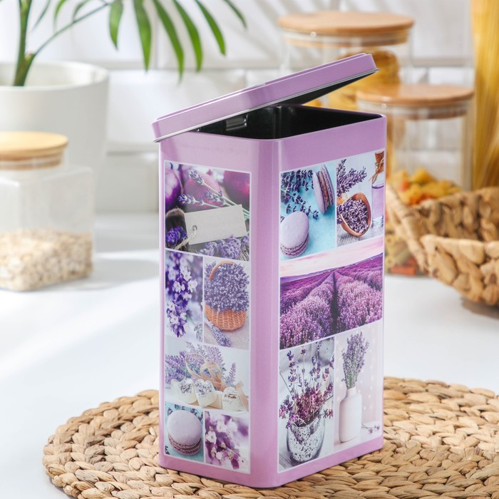 Банка с крышкой для сыпучих продуктов «Лаванда-3», 2,7 л, 9,5×21,5 см, прямоугольная