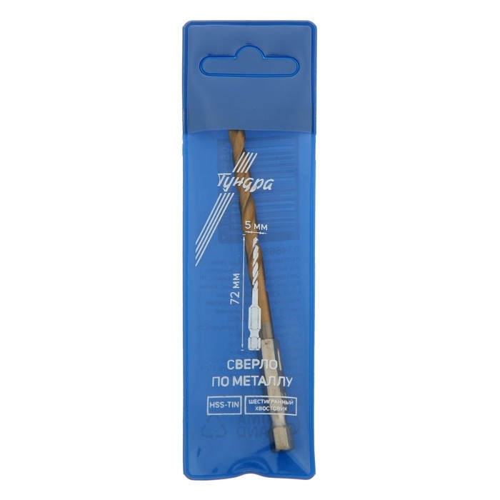 Сверло по металлу ТУНДРА, HSS-Tin, шестигранный хвостовик, 5 х 72 мм