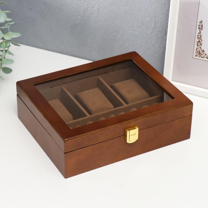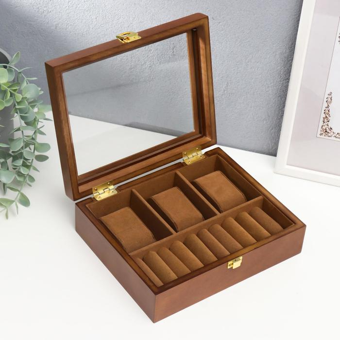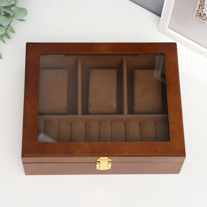 Шкатулка дерево под часы 3 деления и бижутерию "Корица" 7,4х18х22 см