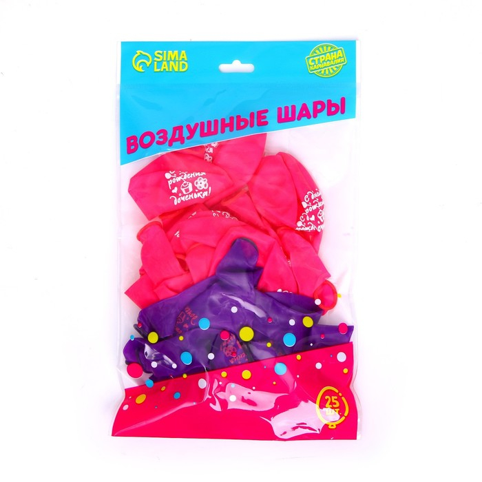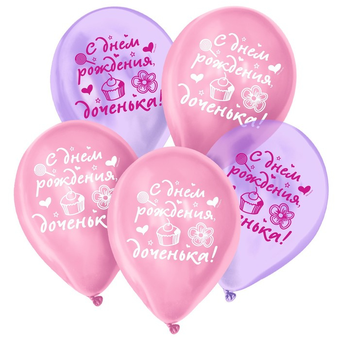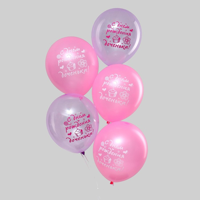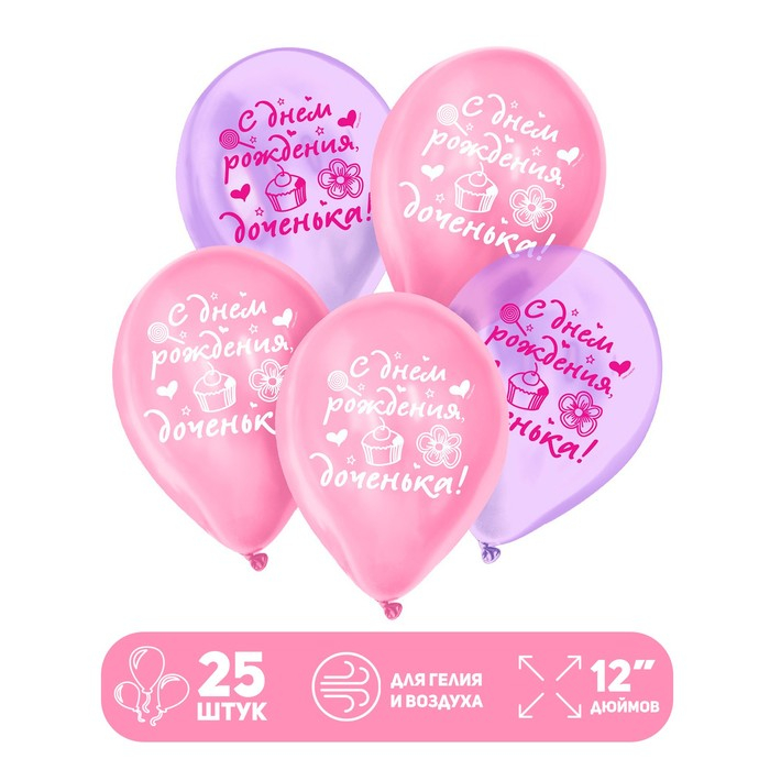 Воздушный шар латексный 12" "С днем рождения, доченька", кристалл, 25 шт.