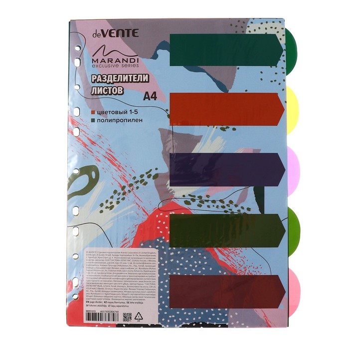 Разделитель листов A4 (300 x 225 мм) цветовой, 5 листов, "deVENTE. Marandi" полипропилен 140 мкм, индивидуальная упаковка