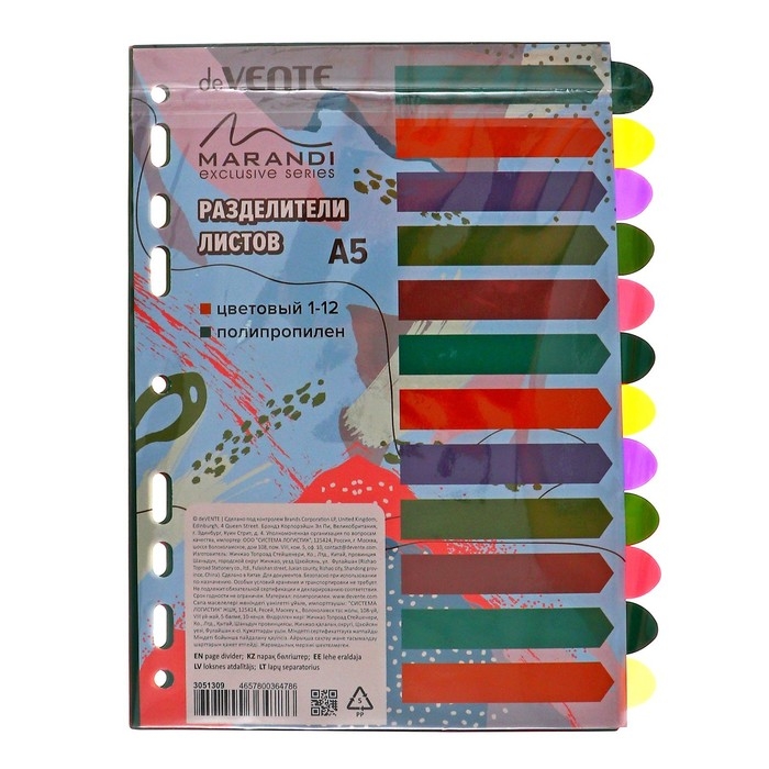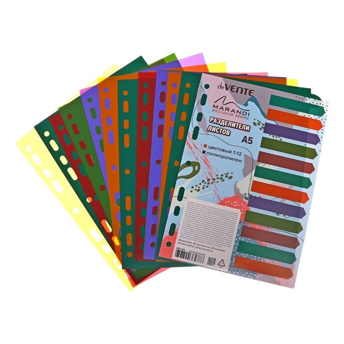 Разделитель листов A5 (210 x 165 мм) цветовой, 12 листов, "deVENTE. Marandi" полипропилен 140 мкм, индивидуальная упаковка