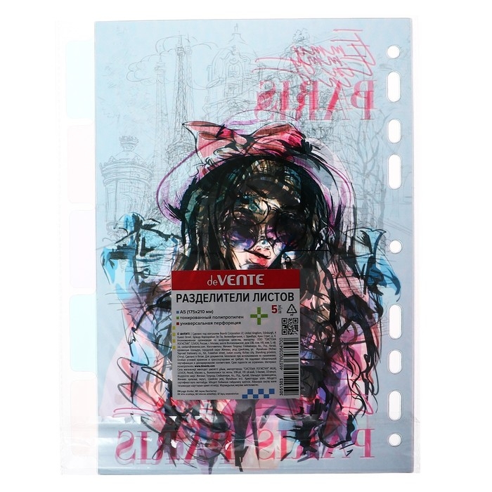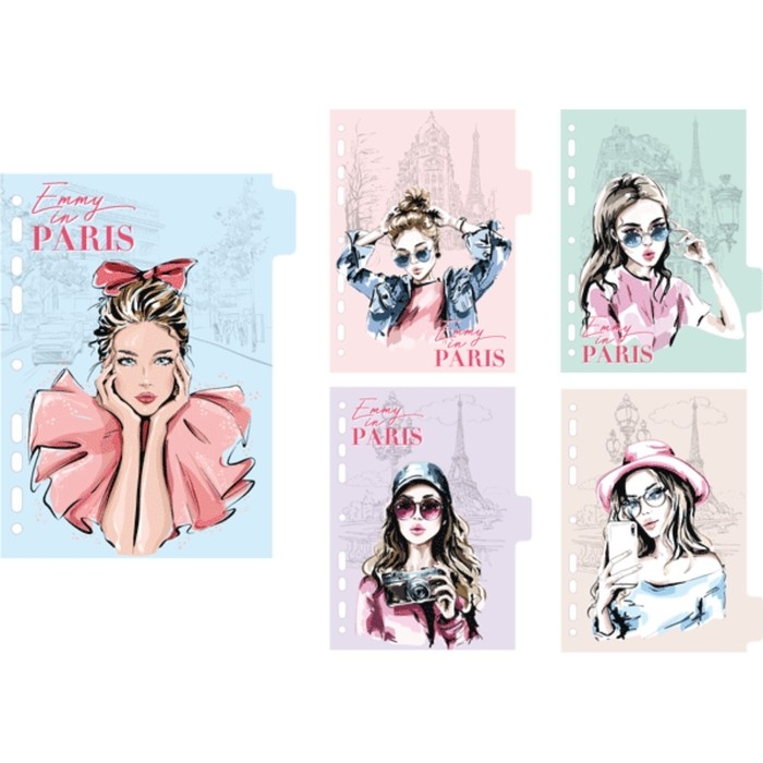 Разделитель листов A5 (175 x 210 мм) цветовой, 5 листов, "deVENTE. Emmy in Paris" полипропилен 140 мкм, тонированные с рисунком, индивидуальная упаковка