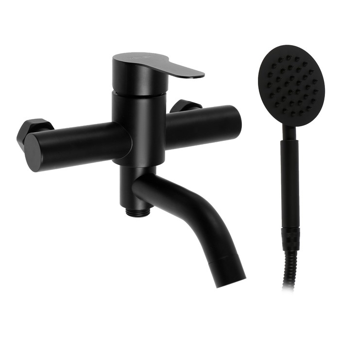 Смеситель для ванны ZEIN Z3491, изогнутый излив, душевой набор, нержавеющая сталь, черный
