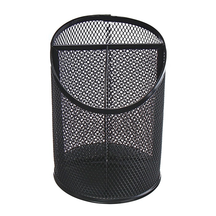 Стакан для пишущих принадлежностей, 3 отделения, сетка, металлический, чёрный