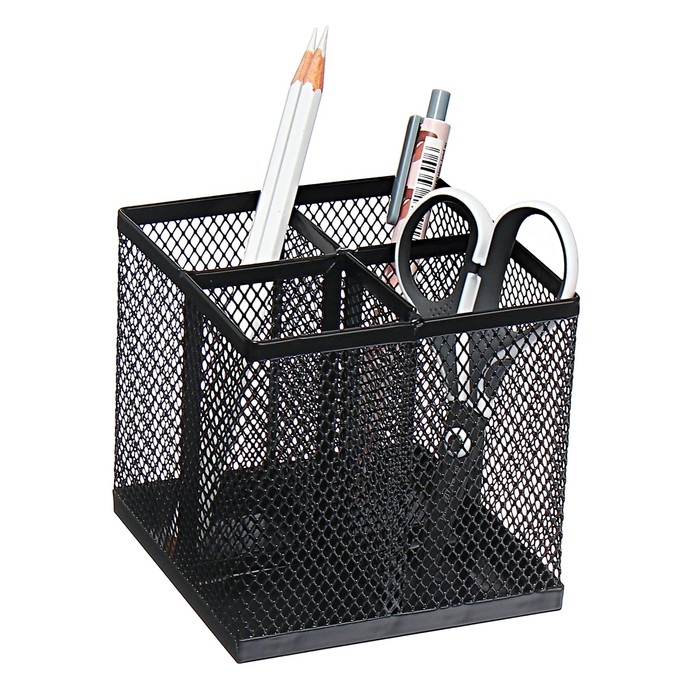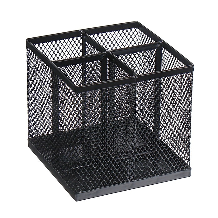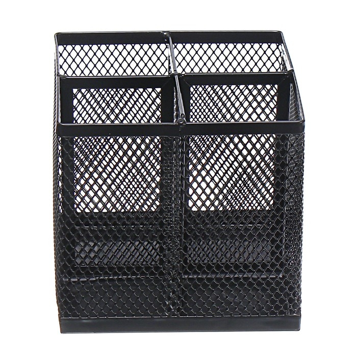 Стакан для пишущих принадлежностей Calligrata, 4 отделения, квадратный, сетка, металлический, чёрный