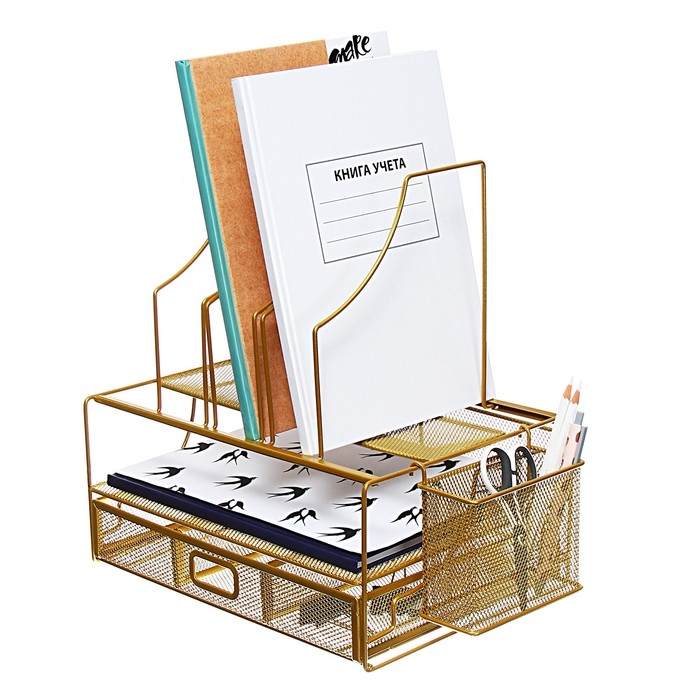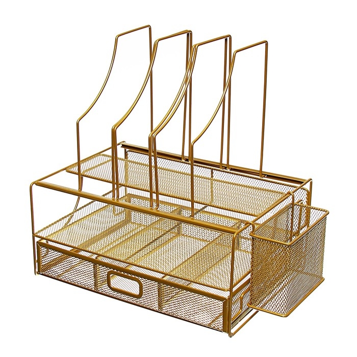 Подставка для канцелярских принадлежностей Calligrata, сетка, металлическая, золотой