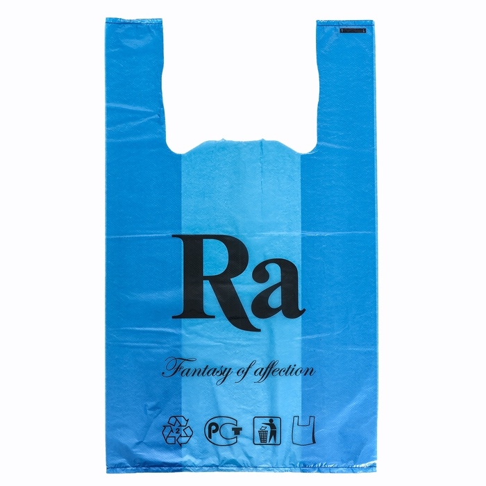 Пакет-майка 30 + 16 х 53 см, 18 мкр, синий "Ra" набор 100шт