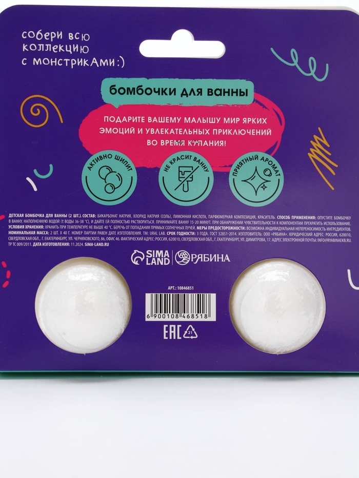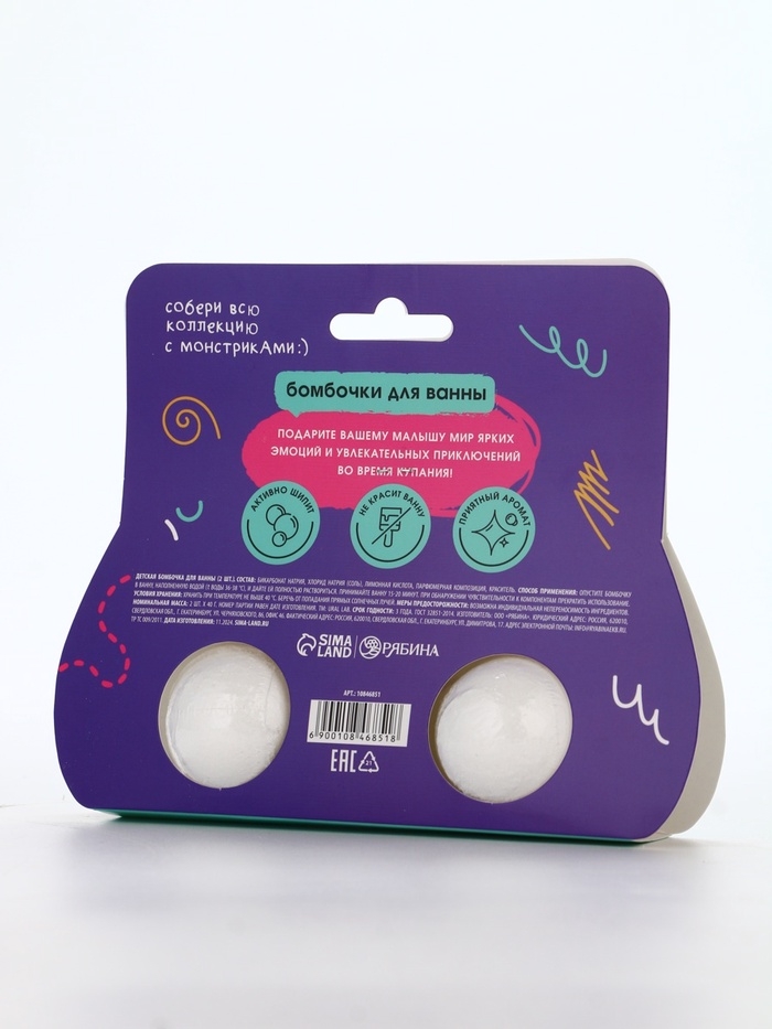 Бомбочки для ванны "Монстрики", 2 x 40 г, аромат сладкий кокосик