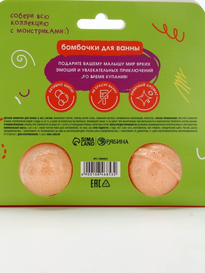 Бомбочки для ванны "Монстрики", 2 x 40 г, аромат карамельный леденец