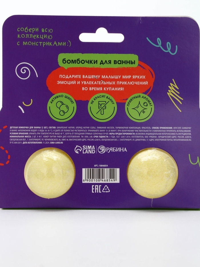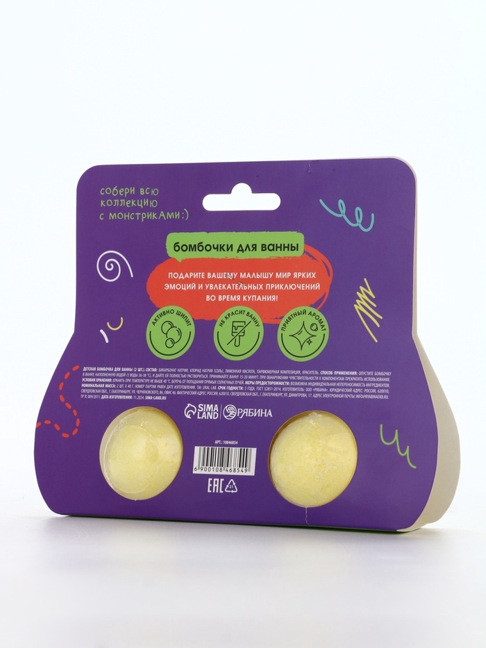 Бомбочки для ванны "Монстрики", 2 x 40 г, аромат банановый кексик