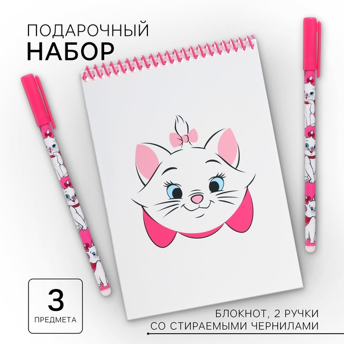 Подарочный набор: блокнот А5 и 2 ручки пиши-стирай, кошечка Мари