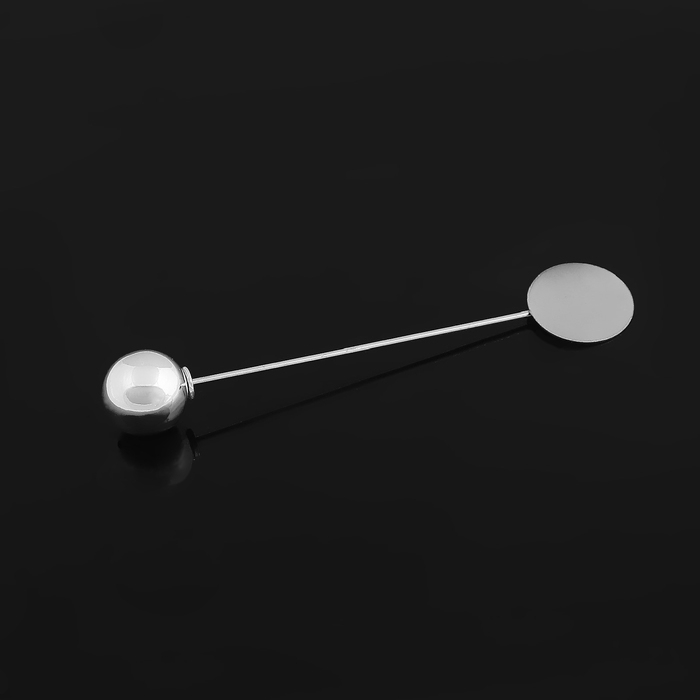 Основа "Брошь-игла" с шариком d=1,2 см (набор 5 шт.), L=5 см, площадка 1,5 см, цвет серебро