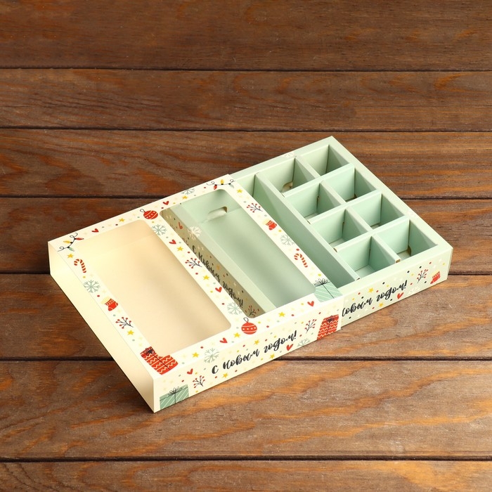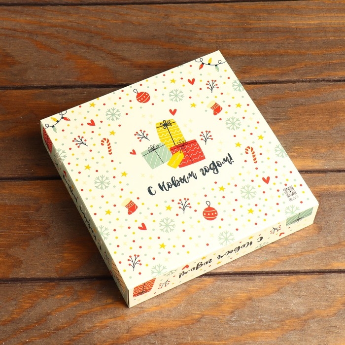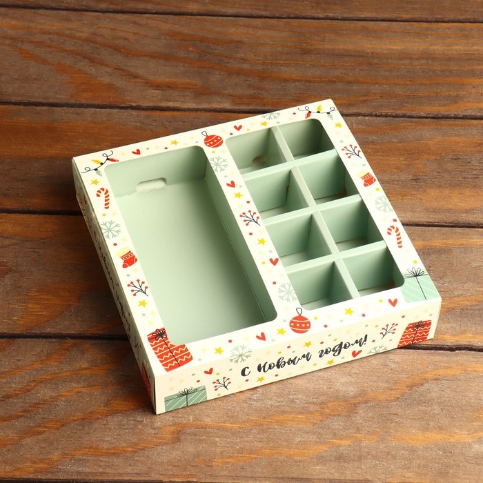 Коробка под 8 конфет + шоколад "с Новым Годом", 17,7 х 17,85 х 3,85 см