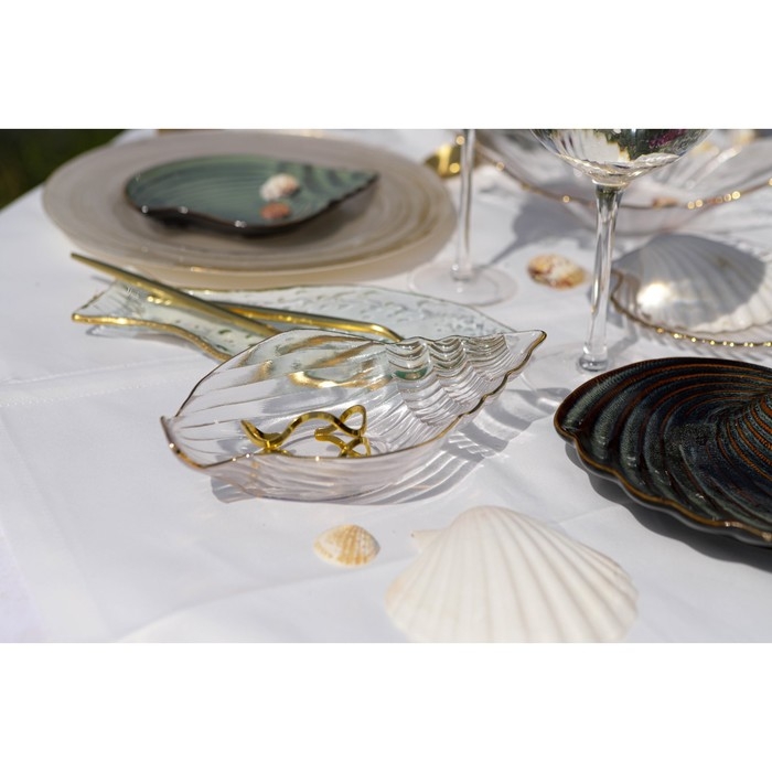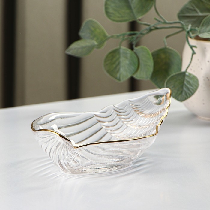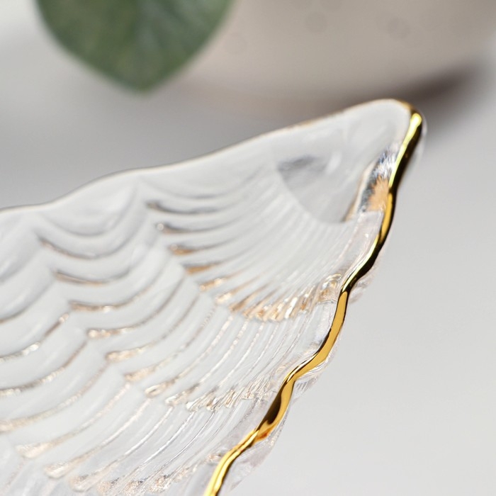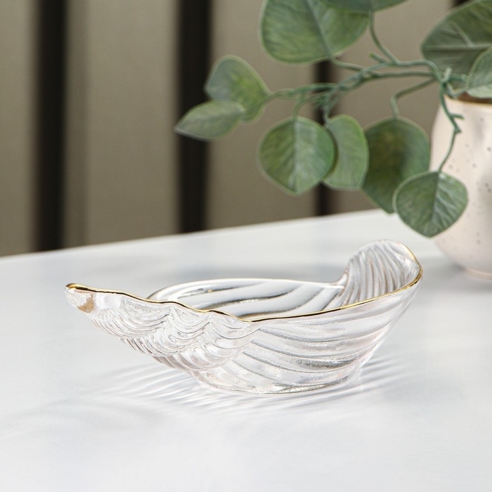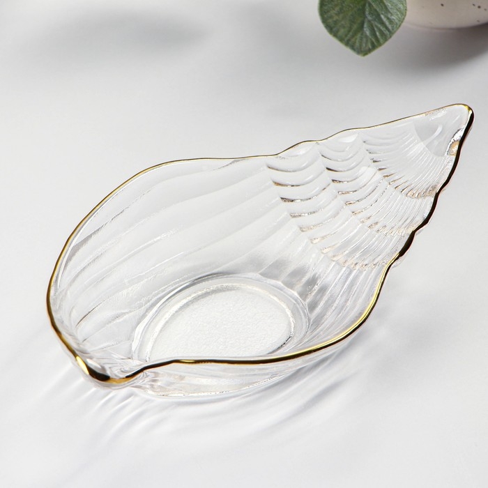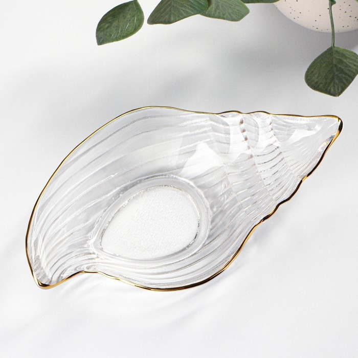 Блюдо сервировочное Magistro «Ракушка», 20×11 см, прозрачное с золотой каймой