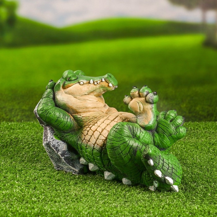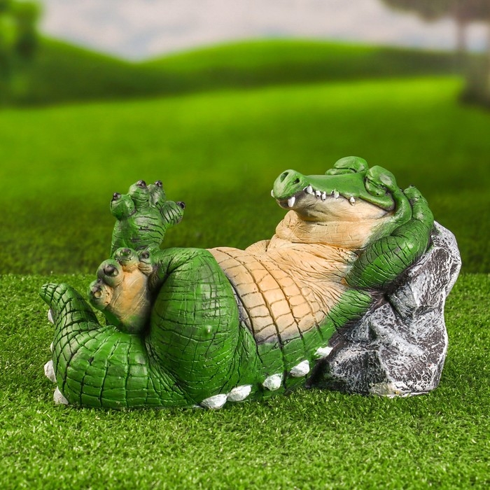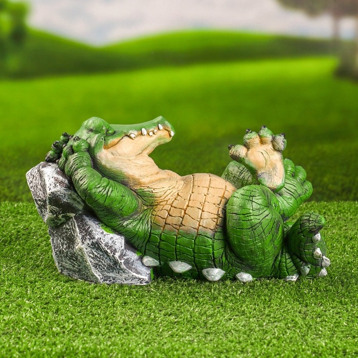 Садовая фигура "Крокодил у камня" 16х29см