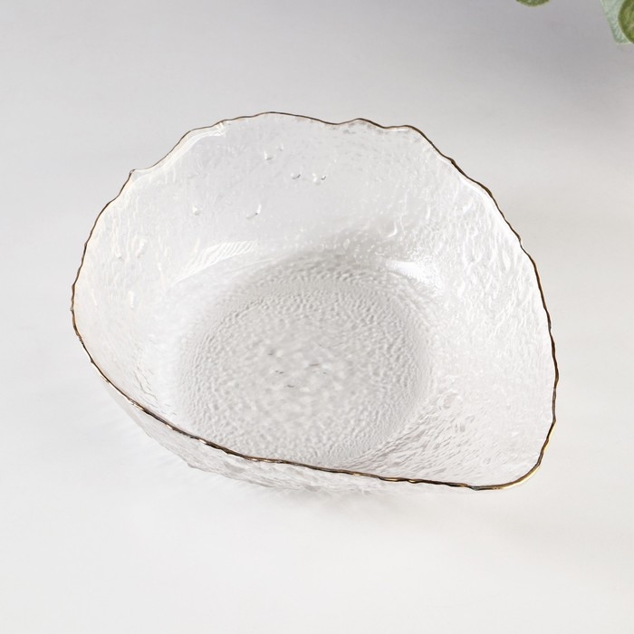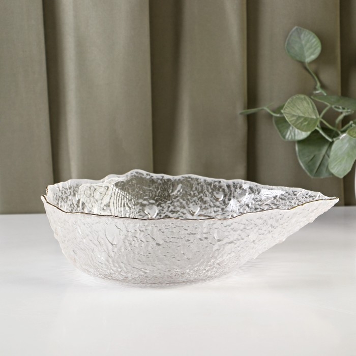Салатник фигурный «Ракушка» изготовлен из рельефного стекла, имеет золотую отводку по краю. Такая посуда придётся по вкусу любителям оригинальных изделий. Салатник станет изюминкой вашего застолья и украсит праздничную сервировку.
