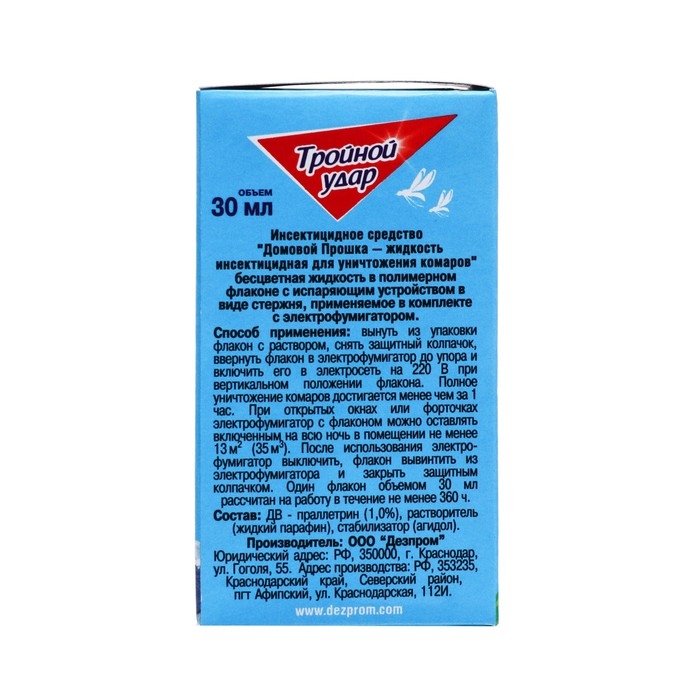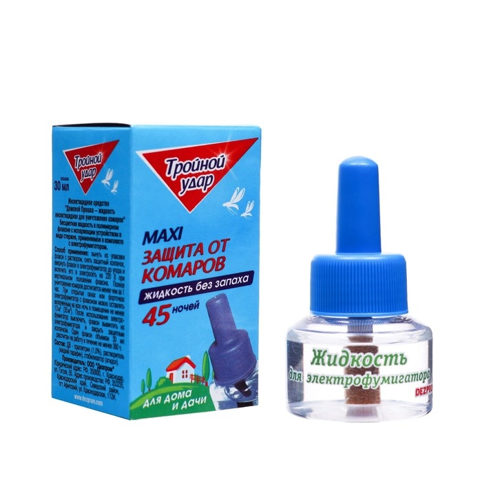 Дополнительный флакон-жидкость от комаров "Домовой Прошка", Тройной Удар, 45 ночей, 30 мл