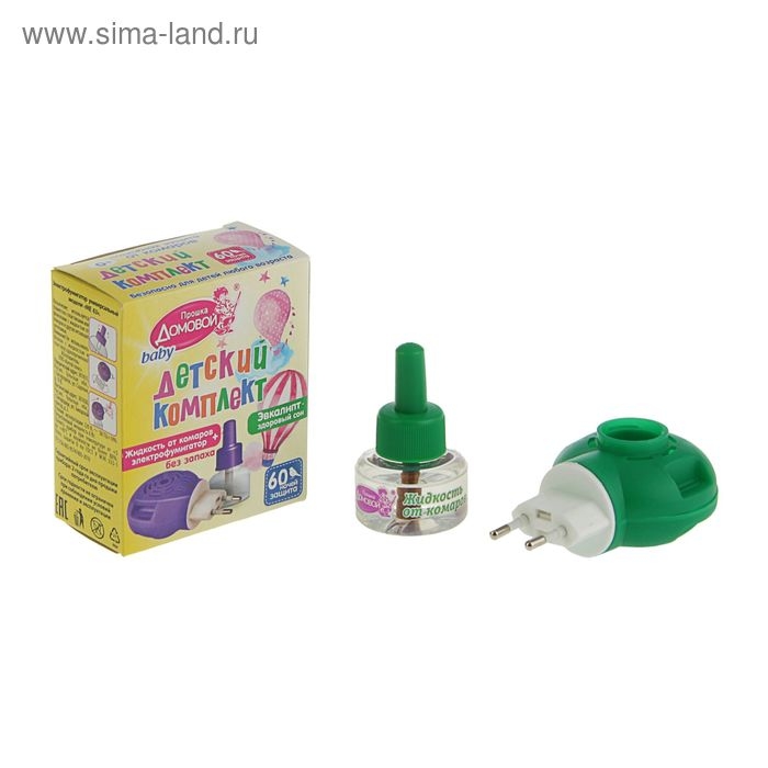 Комплект от комаров Домовой Прошка Детский с Эвкалиптом 60 ночей + фумигатор
