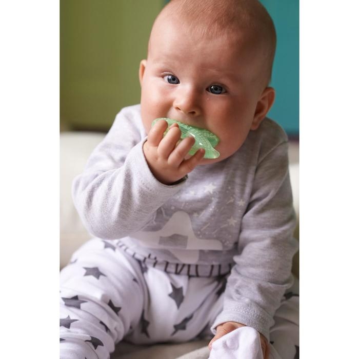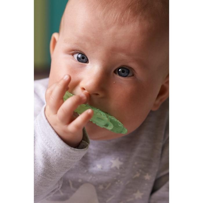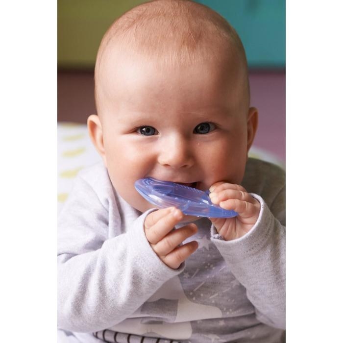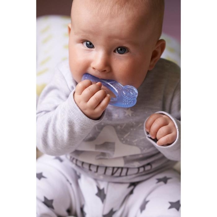 Специальная жидкость внутри поможет снизить воспаление в ротовой полости и снять болевые ощущения. Для охлаждения прорезывателя поместите его в холодильник на 10‒15 минут. Форма ручки и размеры разработаны специально для детской ладони, поэтому малышу будет удобно её держать. Рельефная структура на поверхности изделия и его дополнительных элементов будет способствовать развитию мелкой моторики, а яркие цвета — формированию визуального восприятия мира.