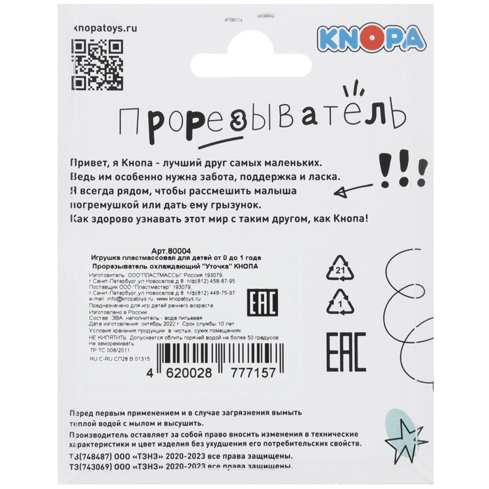 Прорезыватель охлаждающий с водой «Уточка», цвет МИКС, КНОПА