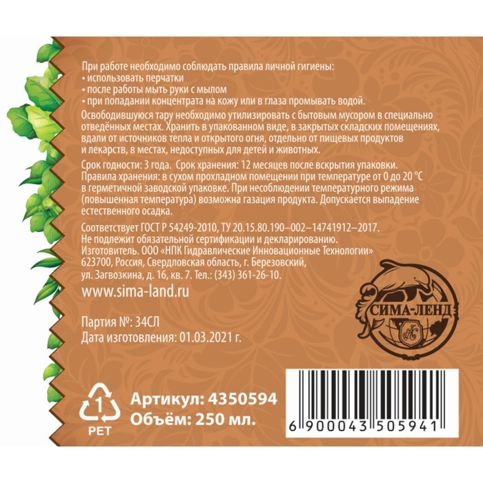 Удобрение Универсальное "Рецепты дедушки Никиты" 0,25 л