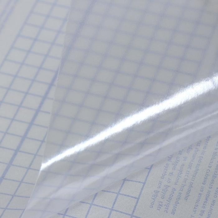 Используйте самоклеящуюся прозрачную плёнку для защиты книг, документов, тетрадей, папок и других предметов. Она ровно ложится, не образуя пузырьков. Клетка на подложке позволит вам точно вырезать необходимый элемент.