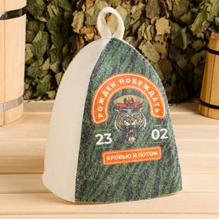 Шапка для бани с принтом "Рожден побеждать 23.02"