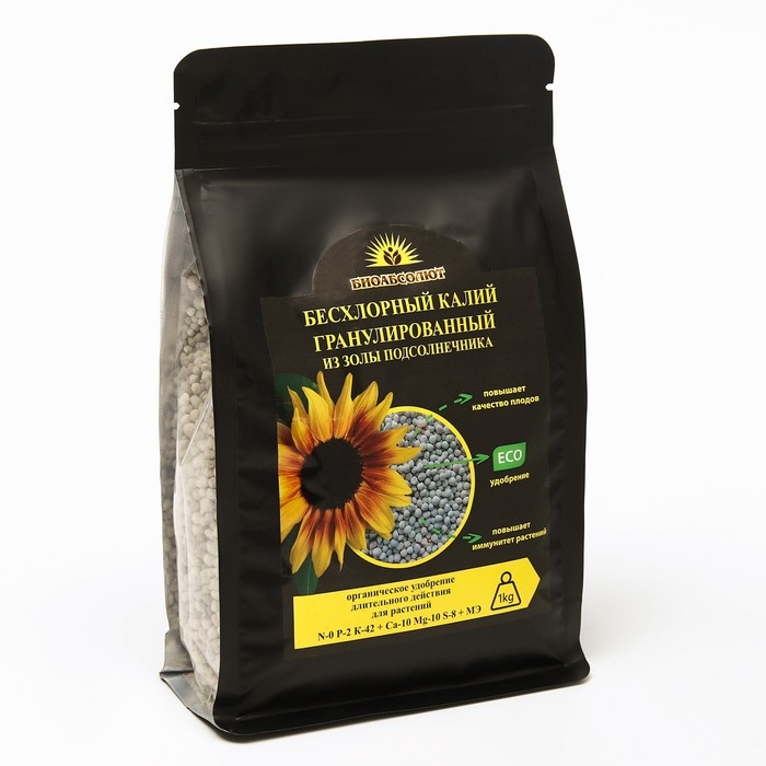 Бесхлорный калий из золы подсолнечника ОМУ, гранулы, 1 кг