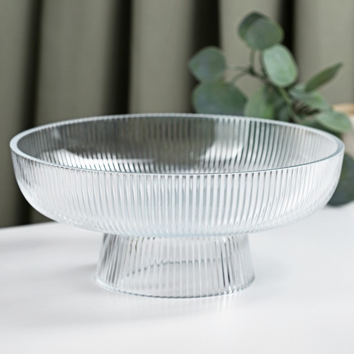 Блюдо на ножке «Камелия» изготовлено из качественного прочного стекла с рельефом. Посуда отлично подойдёт для праздничной сервировке, её можно использовать как салатник или фруктовницу. Такое блюдо будет в центре внимания и придаст изюминку вашей сервировке.