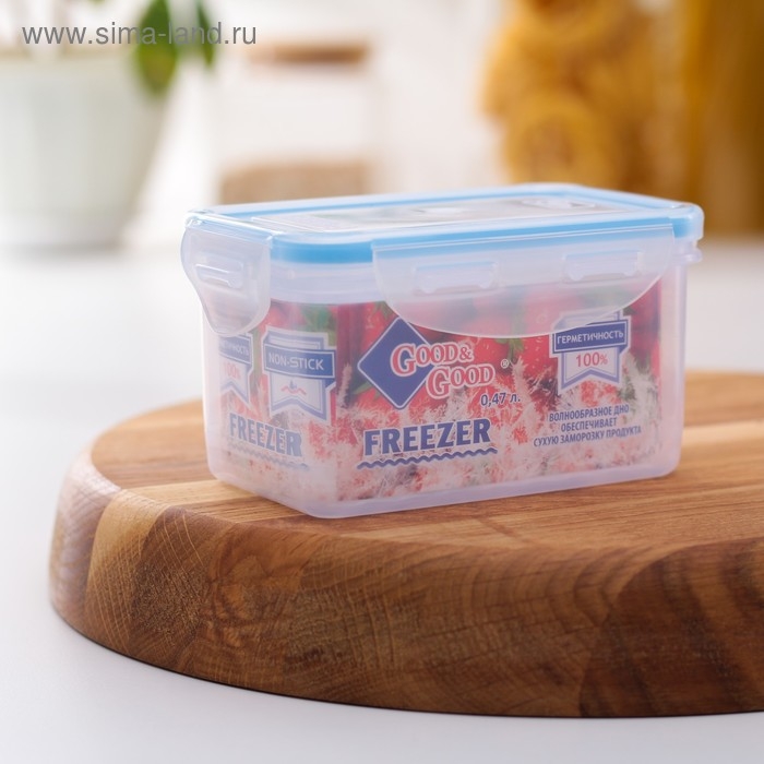 Контейнер пищевой Good & Good, 470 мл, с герметичной крышкой, пластик, крышка голубая
