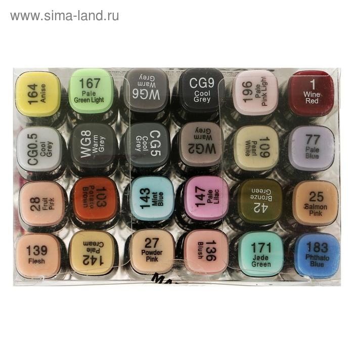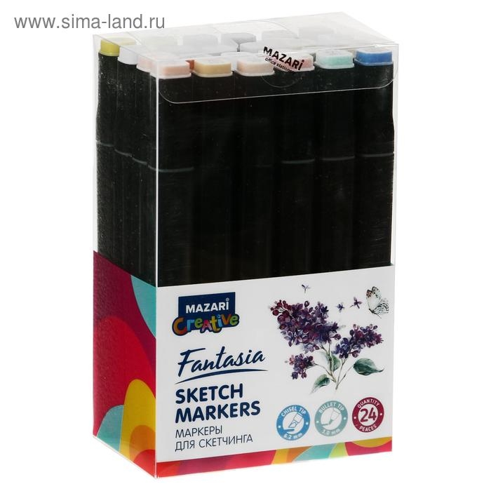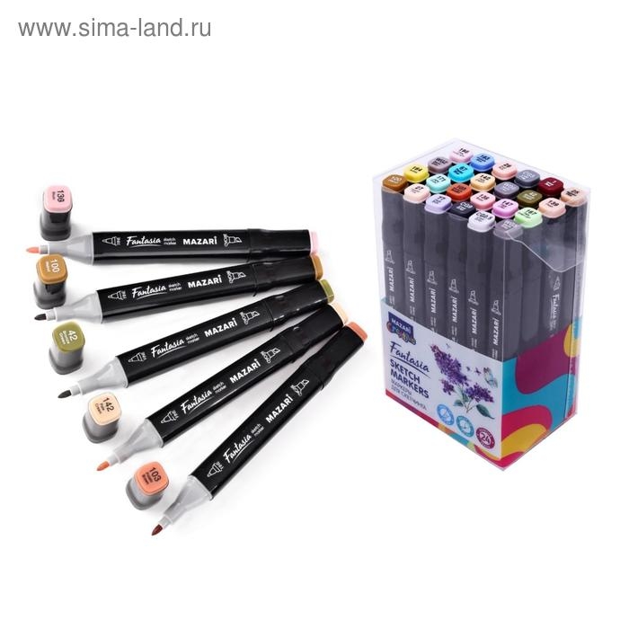 Маркеры для скетчинга двусторонние Mazari Fantasia 24 цвета Grey-Pastel colors (серо-пастельные цвета)