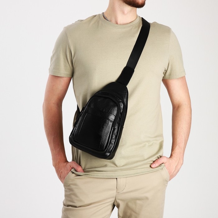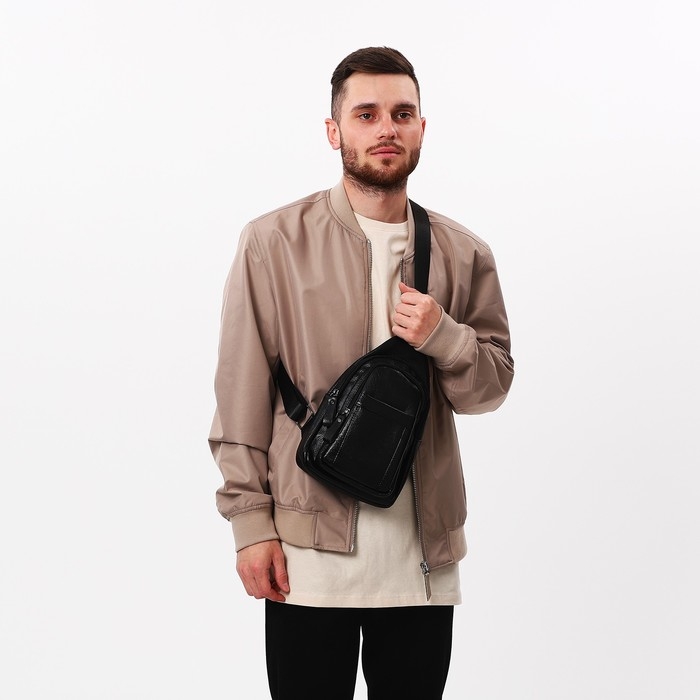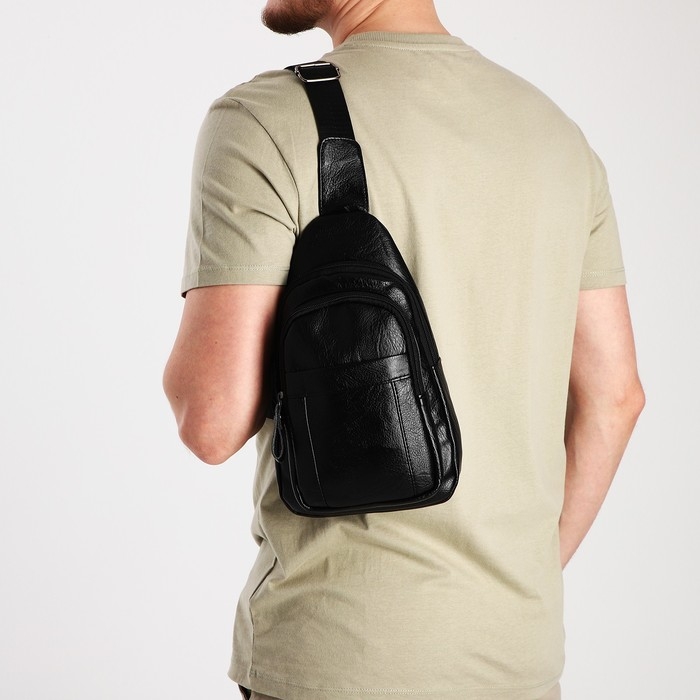 Сумка-слинг мужская, искусственная кожа, цвет чёрный