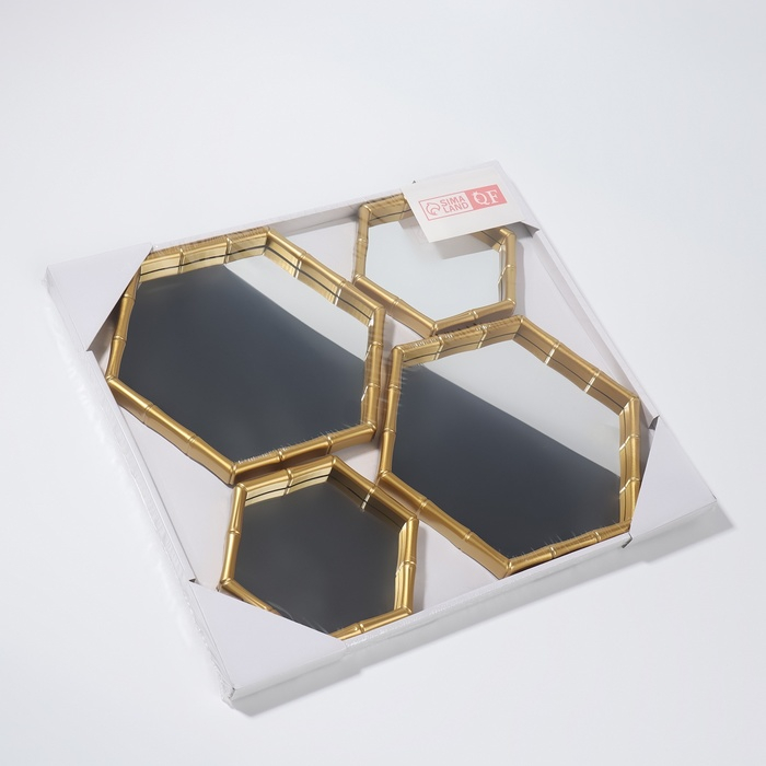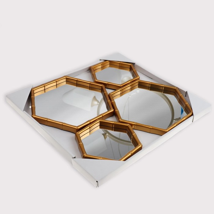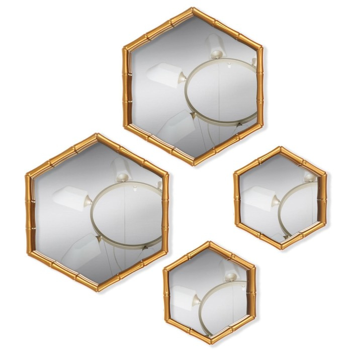 Набор настенных зеркал «Бамбук», зеркальная поверхность 22,7 × 20/15 × 13,2 см, цвет золотистый