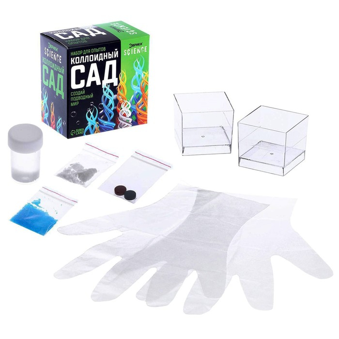 Ребёнок вырастит подводный сад прямо дома! Фантастические «растения» вырастут в специальной ёмкости и удивят юного учёного необычным внешним видом. Коллоидный сад – это интересный химический эксперимент, который доступен каждому. Набор можно использовать для школьного проекта, игр с детьми или увлекательных занятий, которые помогут заинтересовать ребёнка наукой.