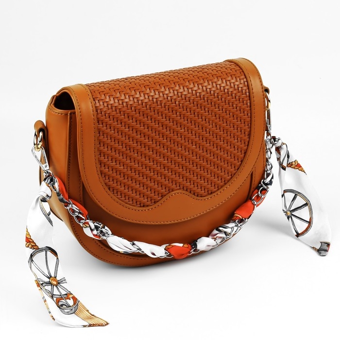 Цепочка с платком для сумки, с карабинами, 9 × 14 мм, 40 см, цвет красный/серебряный