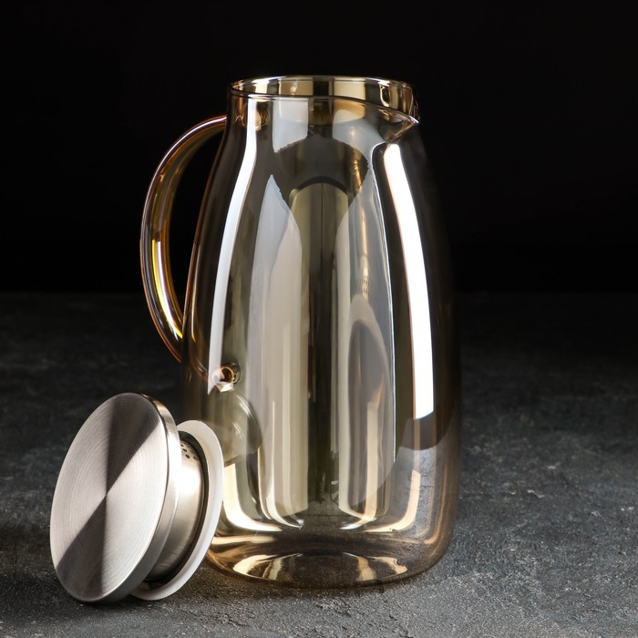 Кувшин для воды стеклянный с металлической крышкой «Богема», 1,8 л, 15×25 см, цвет золотой