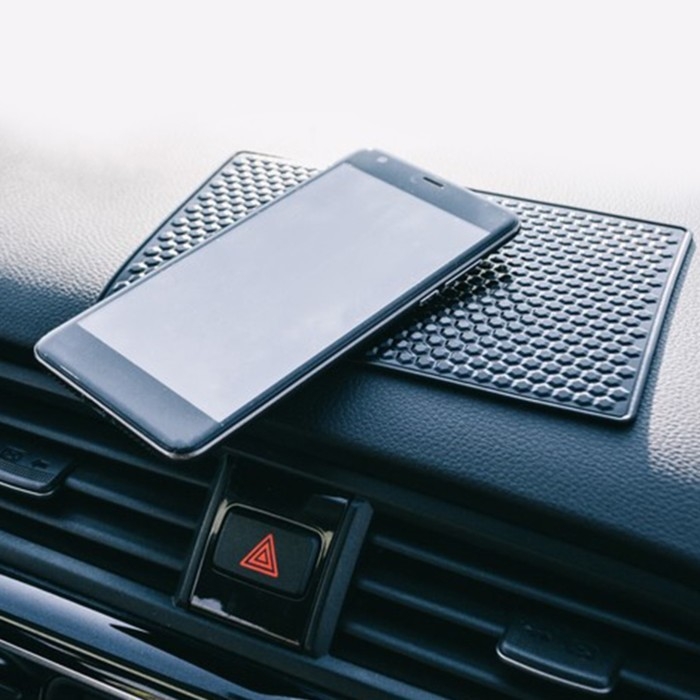 Еще совсем недавно автомобилистам приходилось покупать множество дорогих и громоздких держателей и контейнеров, чтобы удобно разместить в машине гаджеты и нужные мелочи: телефоны, радар-детекторы, зажигалки, очки и прочее. Сегодня производители предлагают всем желающим приобрести за совсем небольшие деньги уникальное по своей простоте и функциональности приспособление – противоскользящий автомобильный коврик. Данный аксессуар представляет собой небольшой коврик из синтетического материала, изнаночная сторона которого обработана специальным липким составом для закрепления на передней панели автомобиля.