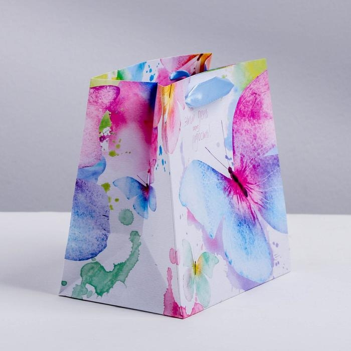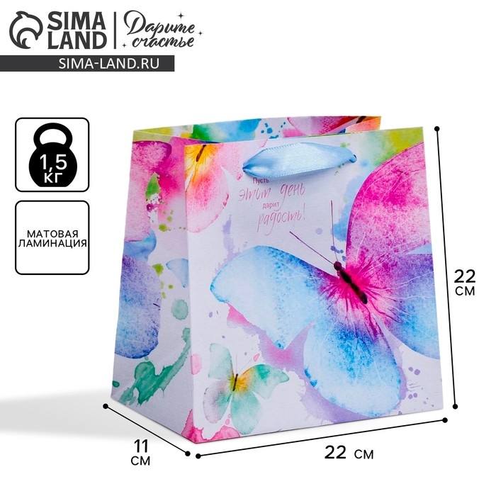Пакет подарочный ламинированный квадратный, упаковка, «Нежность бабочки», 22 х 22 х 11 см