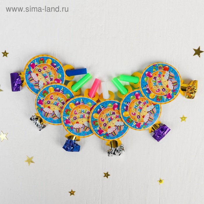 Язычки-гудки «С днём рождения», сладости, набор 6 шт.